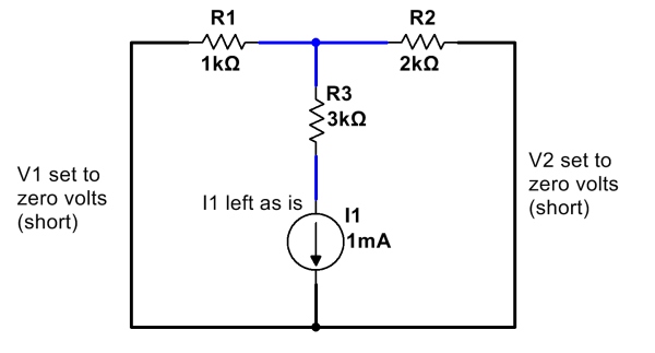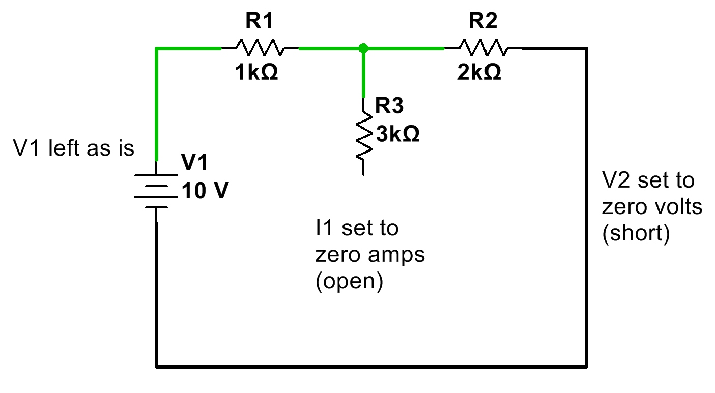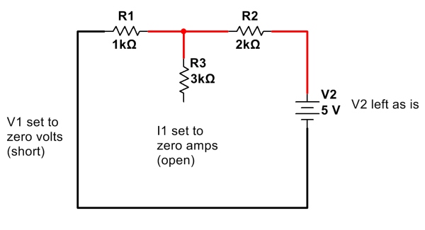 - Replace all current sources not being analyzed with an open (zero current).